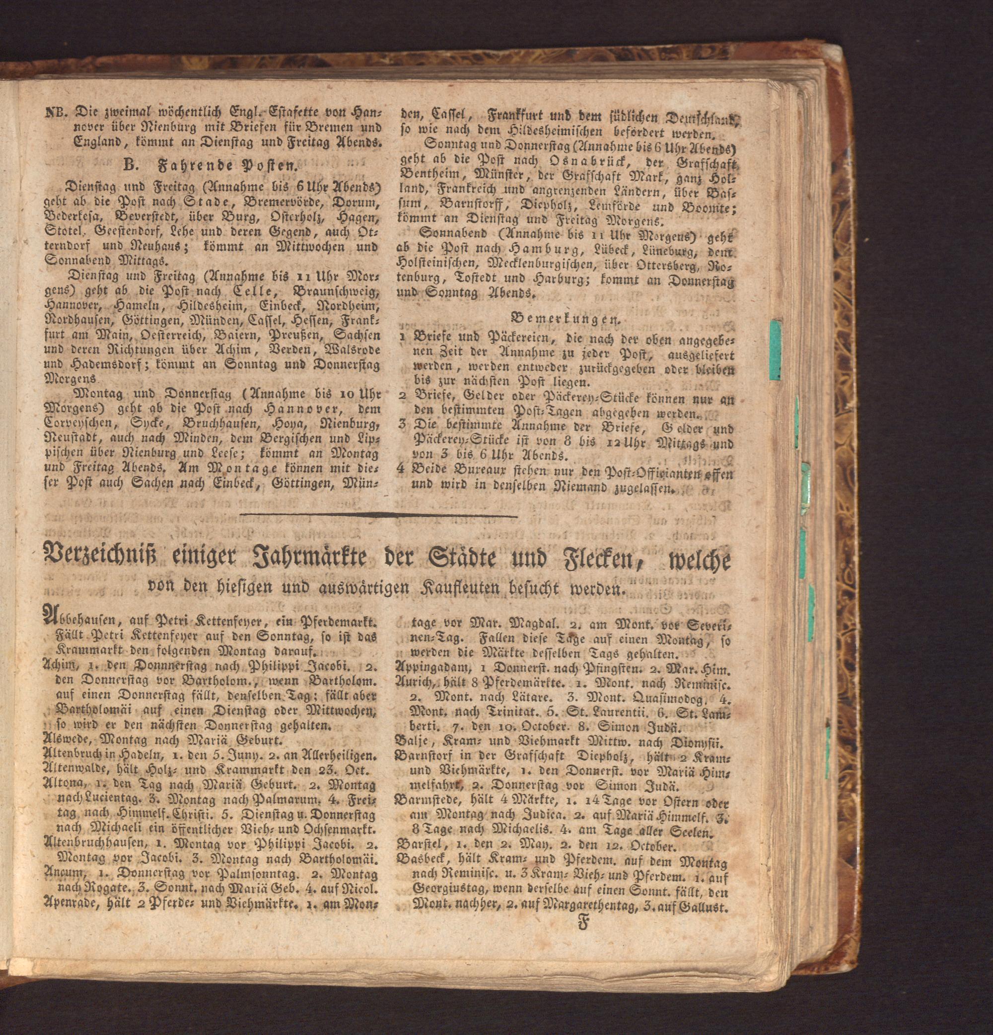 Verzeichniß der reitenden und fahrenden Posten wie solche in der freyen Hanse-Stadt...