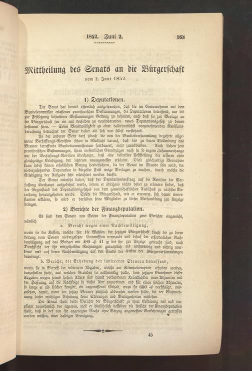 2.6.1852 Mitteilung des Senats an die Bürgerschaft