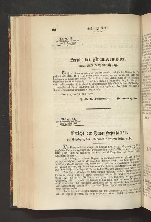 2.6.1852 Mitteilung des Senats an die Bürgerschaft