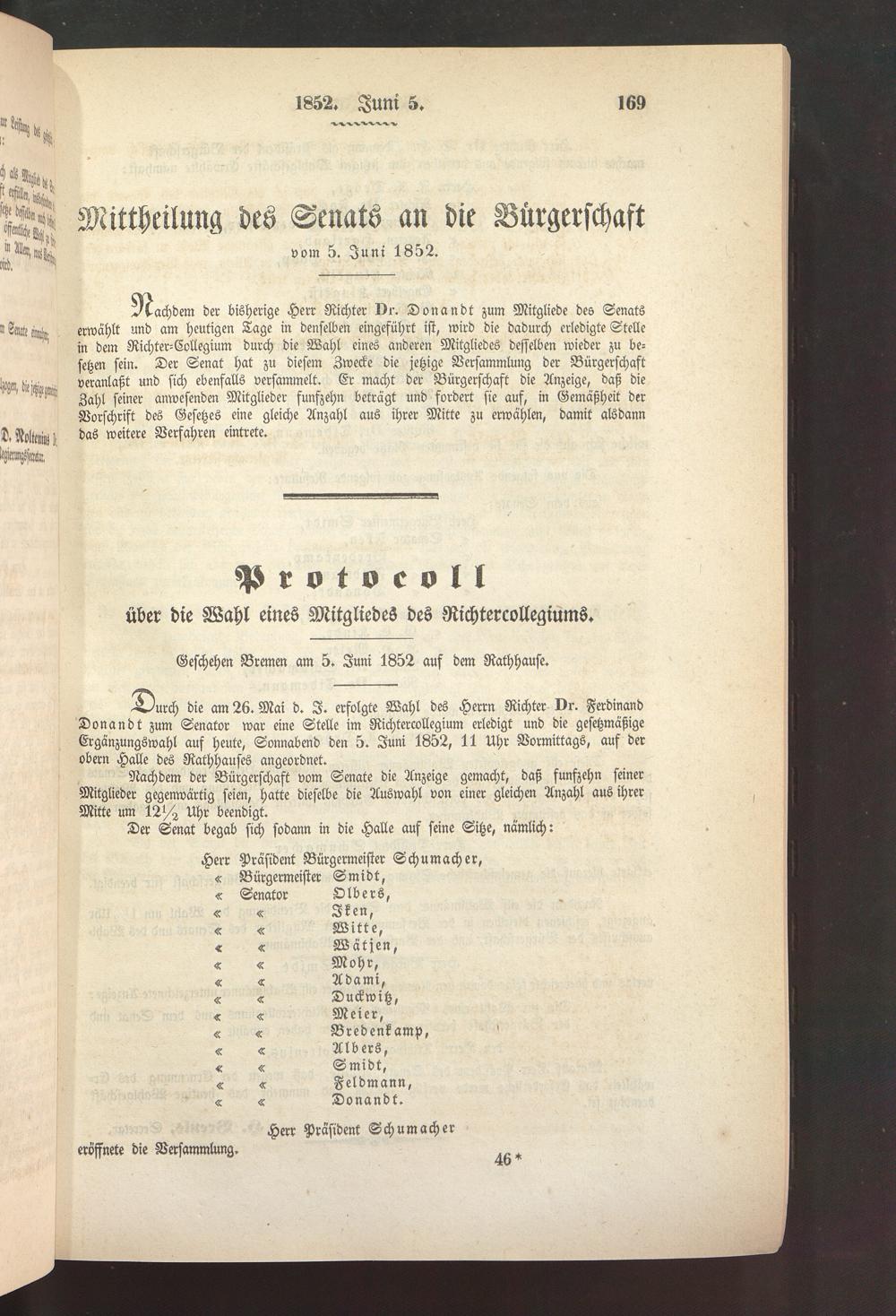 (5.6.1852) Mitteilung des Senats an die Bürgerschaft