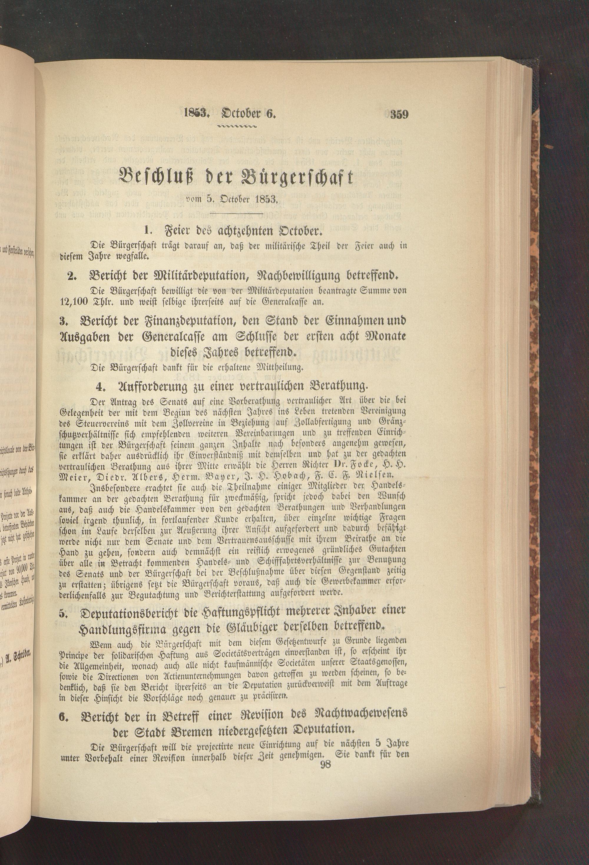 (5.10.1853) Beschluß der Bürgerschaft