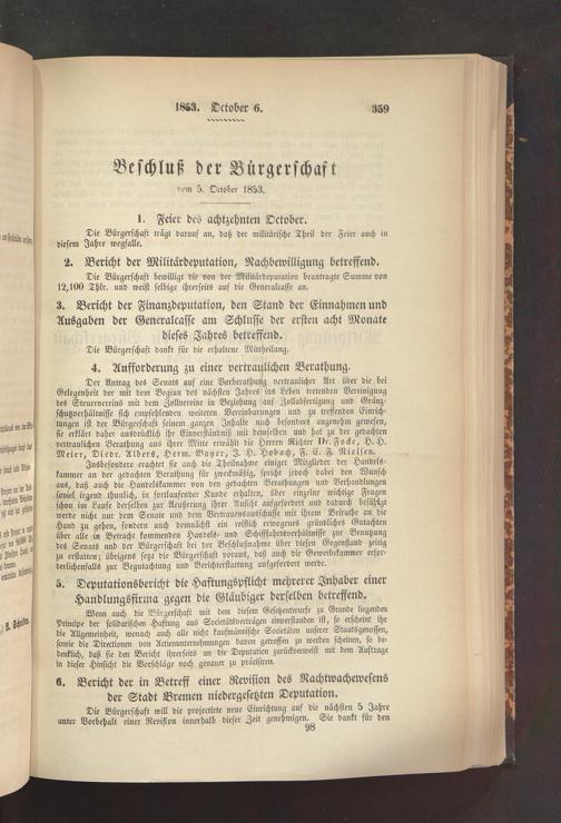 5.10.1853 Beschluß der Bürgerschaft
