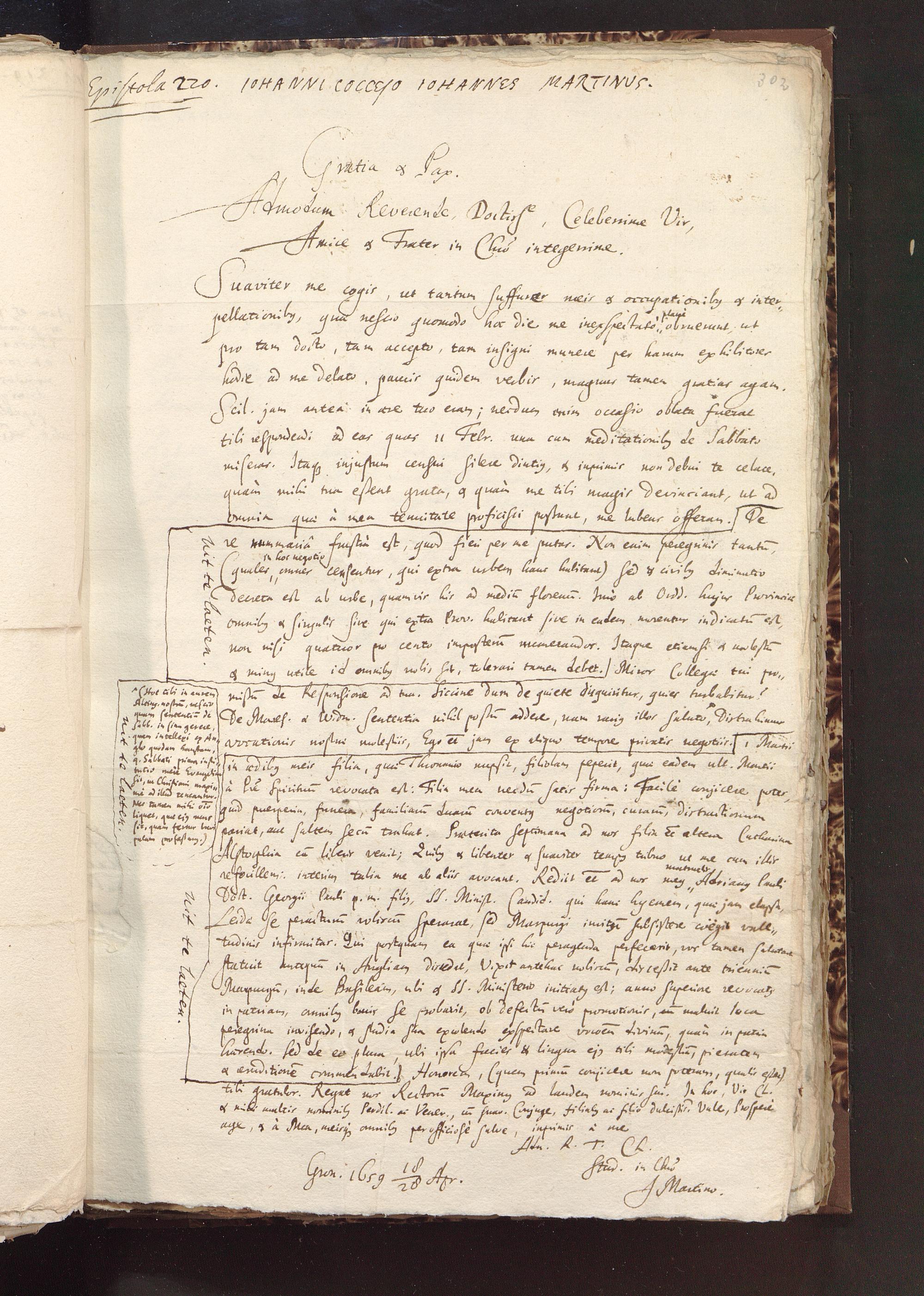 Brief von Johannes Martinus an Johannes Coccejus, 18.04.1659-28.04.1659