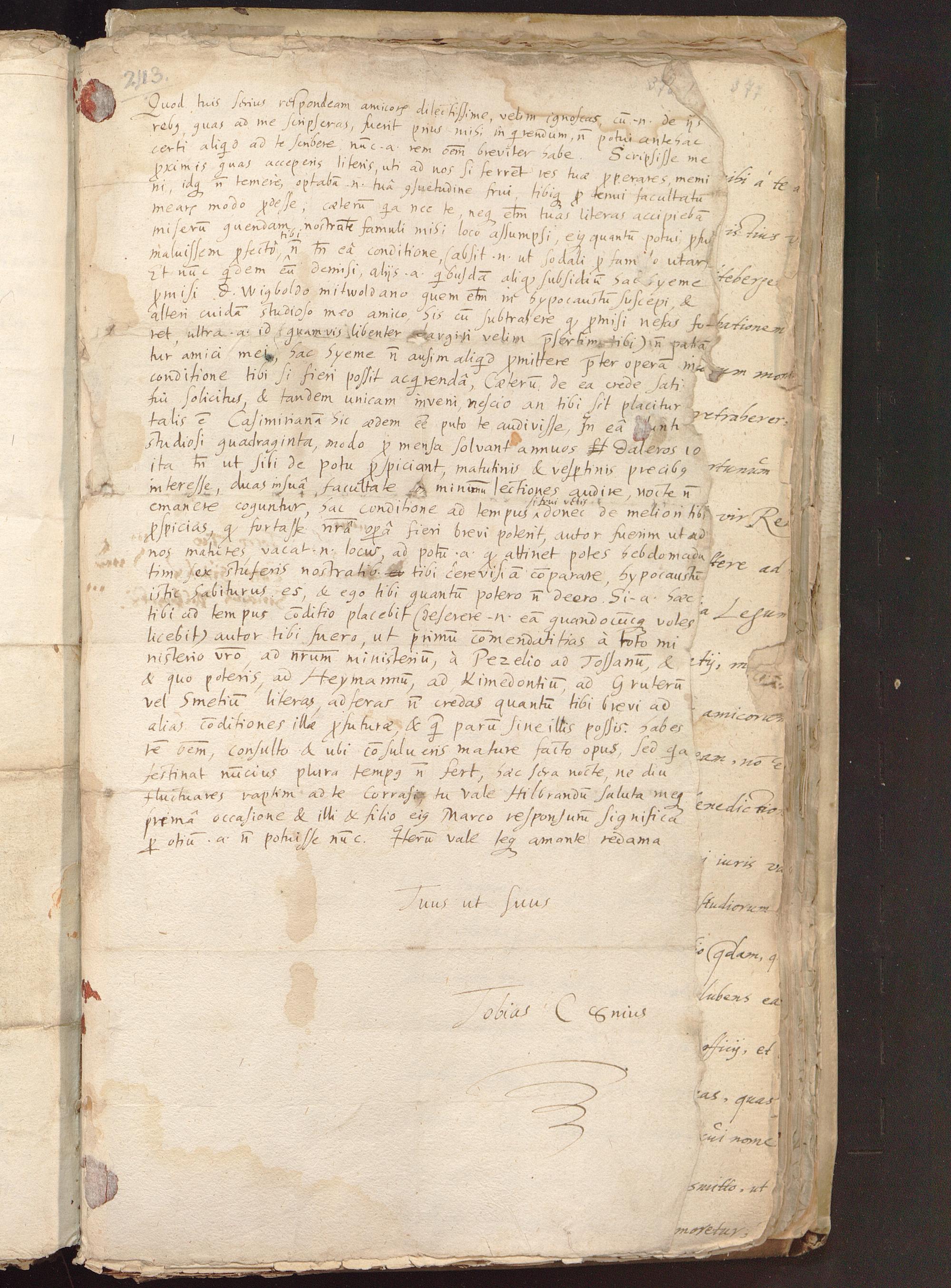 Brief von Tobias Coenius an Johannes Fabritius, 1599