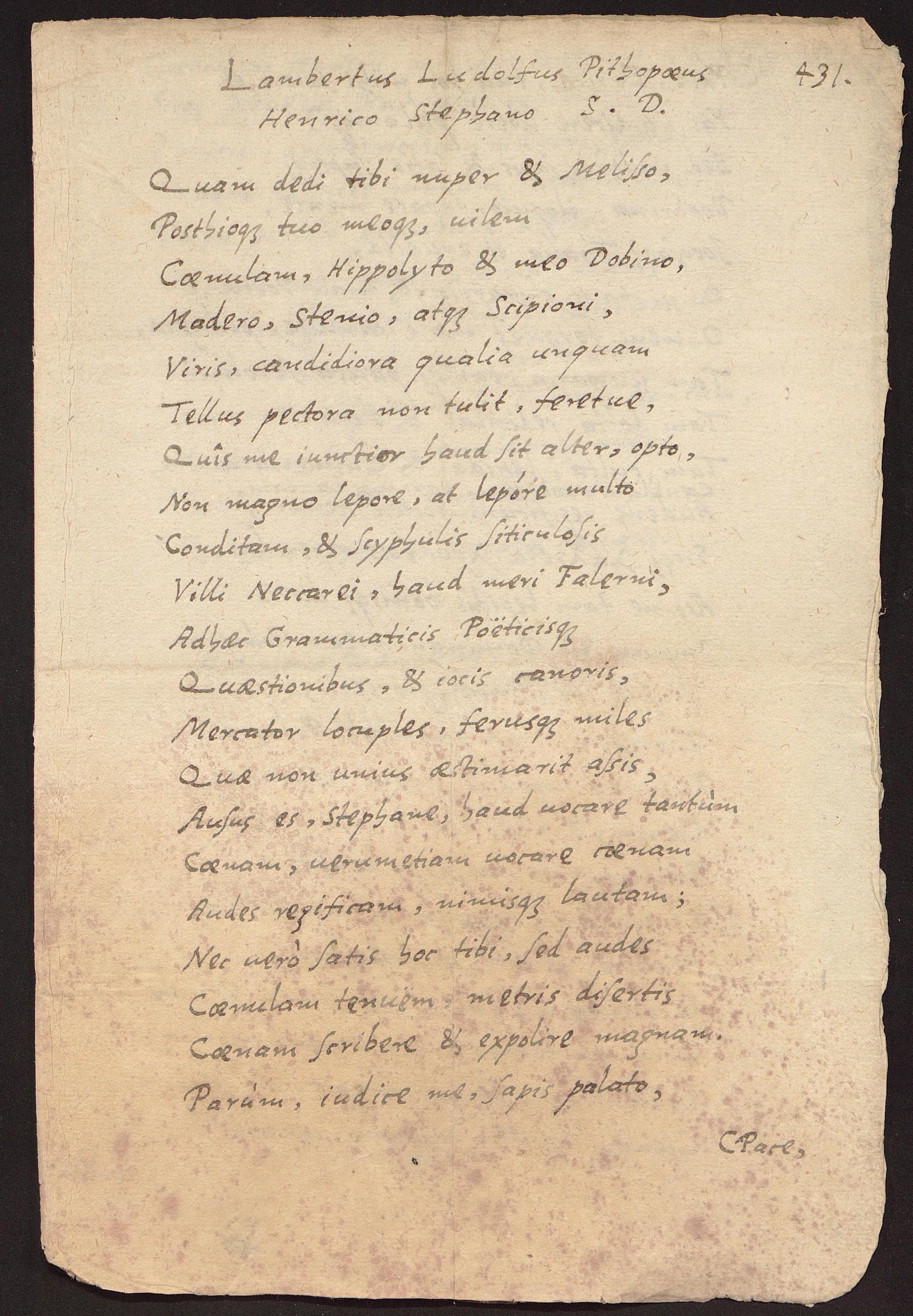 Brief von Lambert Ludolf Helm an Henri Estienne, 26.06.1588