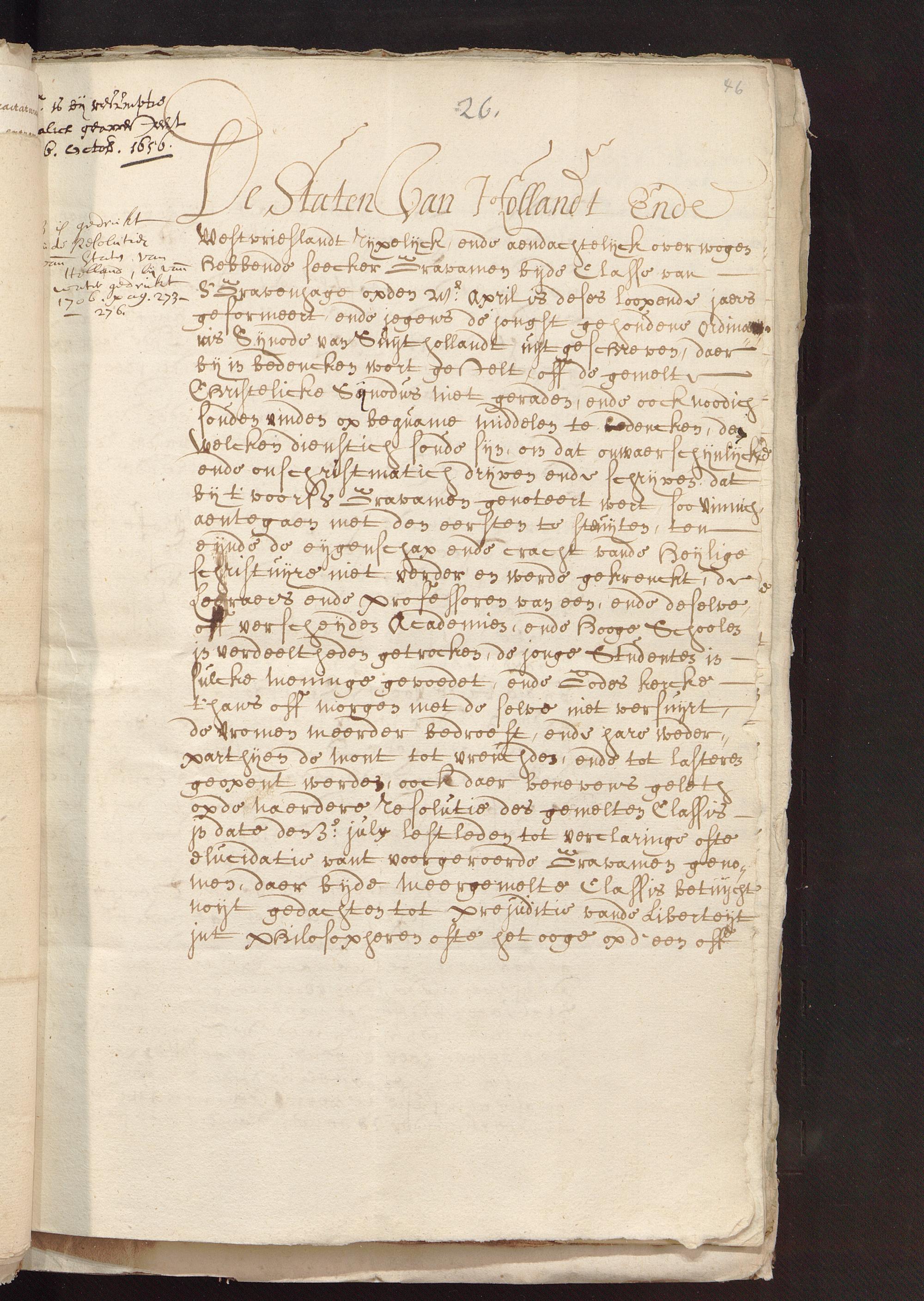 Brief von Daniel Colonius und Staten von Holland an Universität (Leiden), 08.10.1656