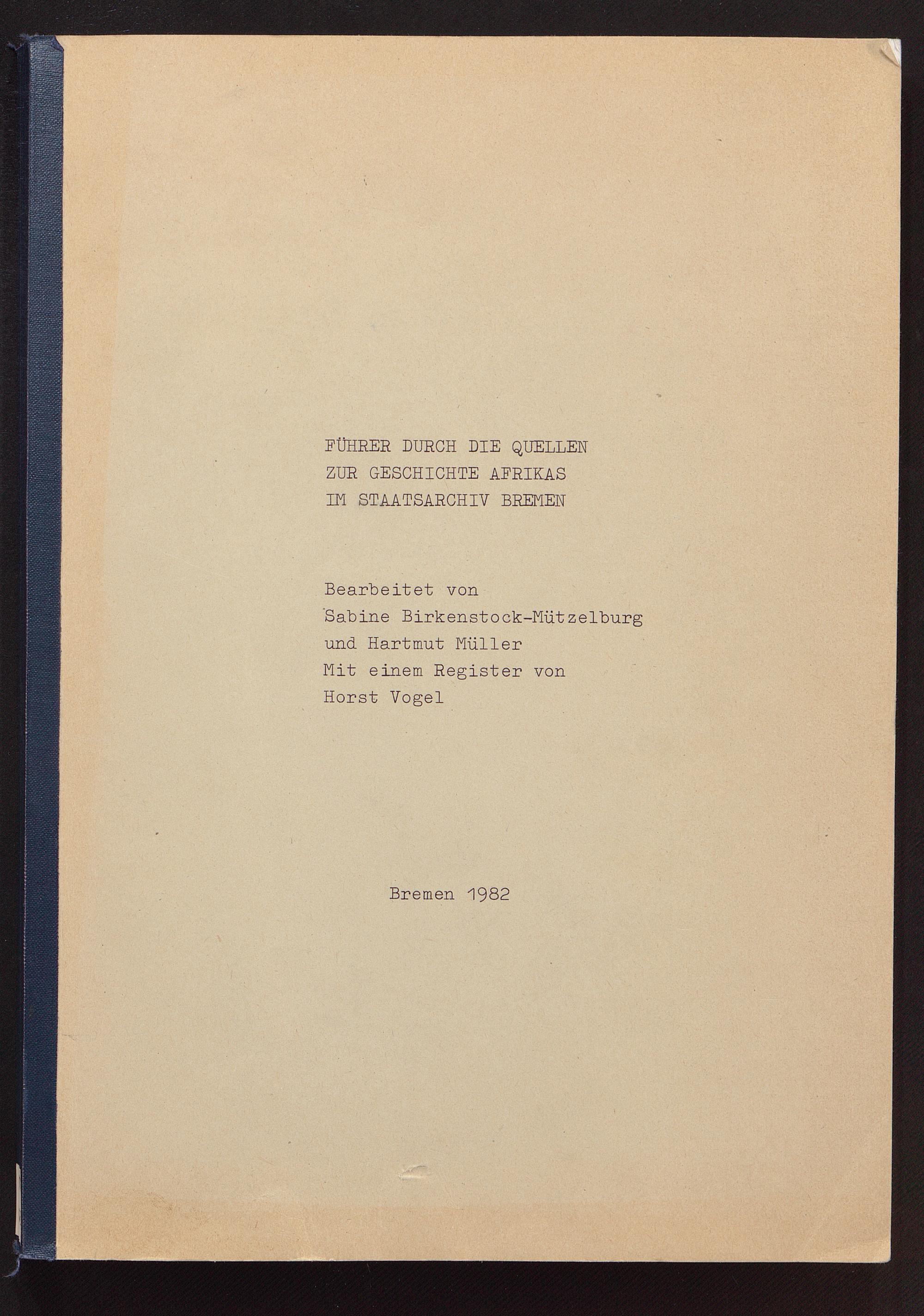 FÜHRER DURCH DIE QUELLEN ZUR GESCHICHTE AFRIKAS IM STAATSARCHIV BREMEN