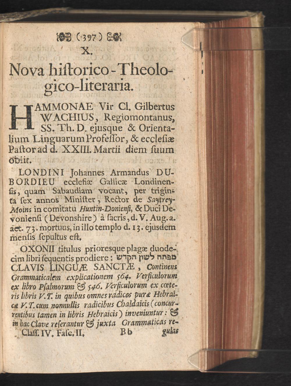 VI. Joh. Christophori Iselii, (a) S. literarum professoris in Academia Basileensi, de vita ac morte Ludovici Beri (b) relatio.