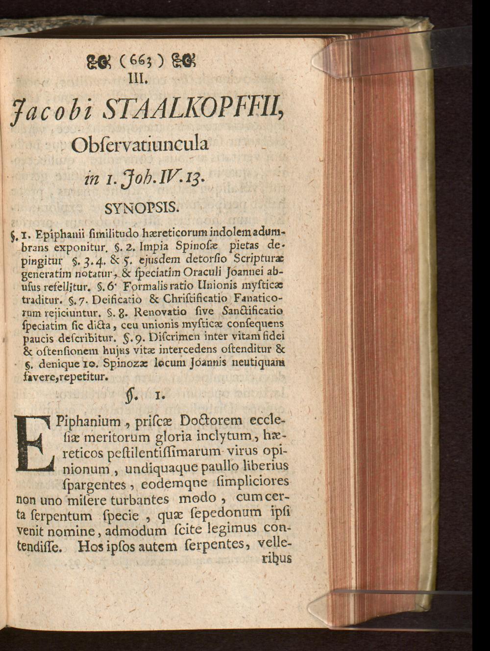 III Jacobi Staalkopffii, Observatiuncula in I. Joh, IV.13.