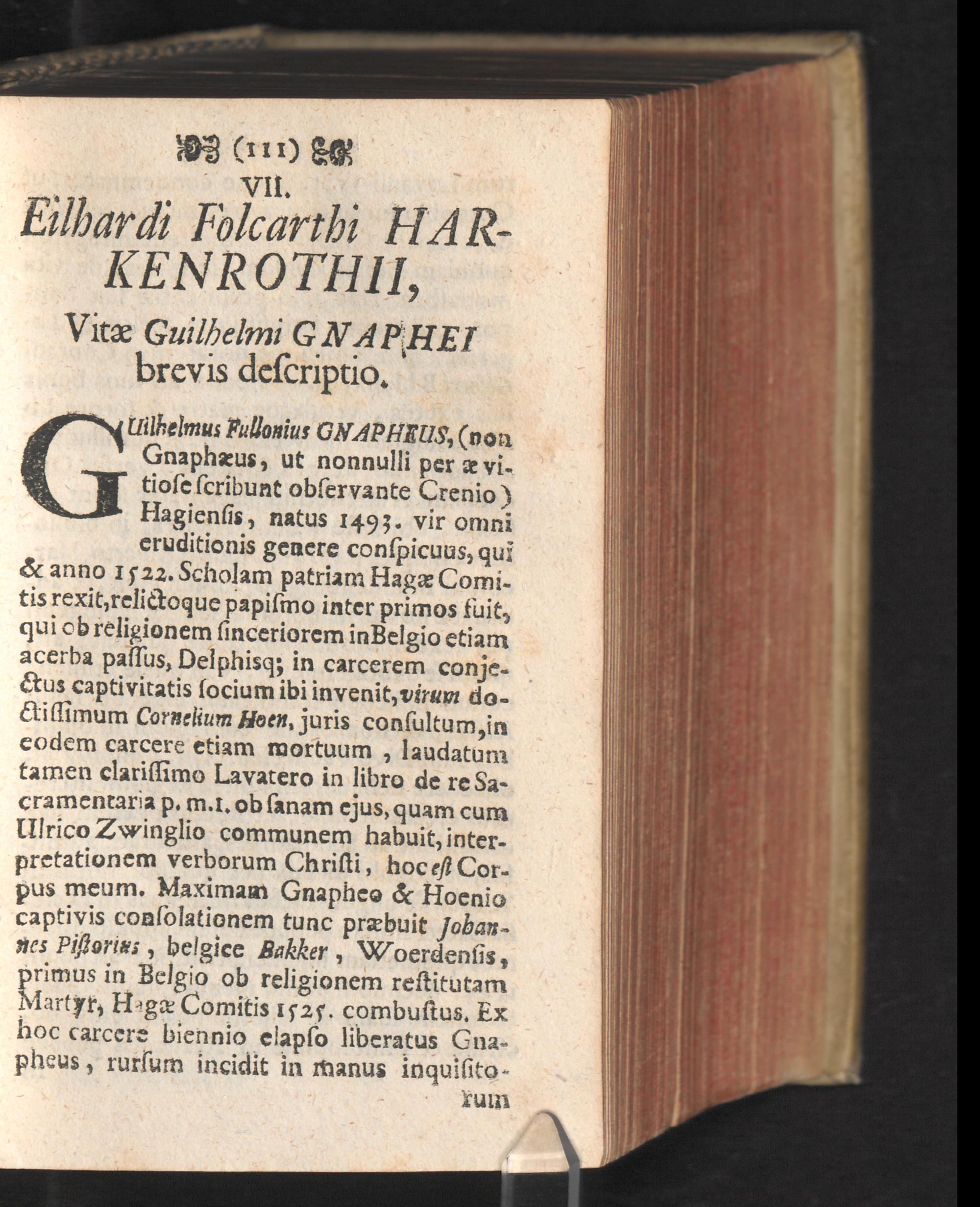 VII. Eilhardi di Folcarthi Harkenrothii, Vitae Guilhelmi GNAPHEI brevis descript...