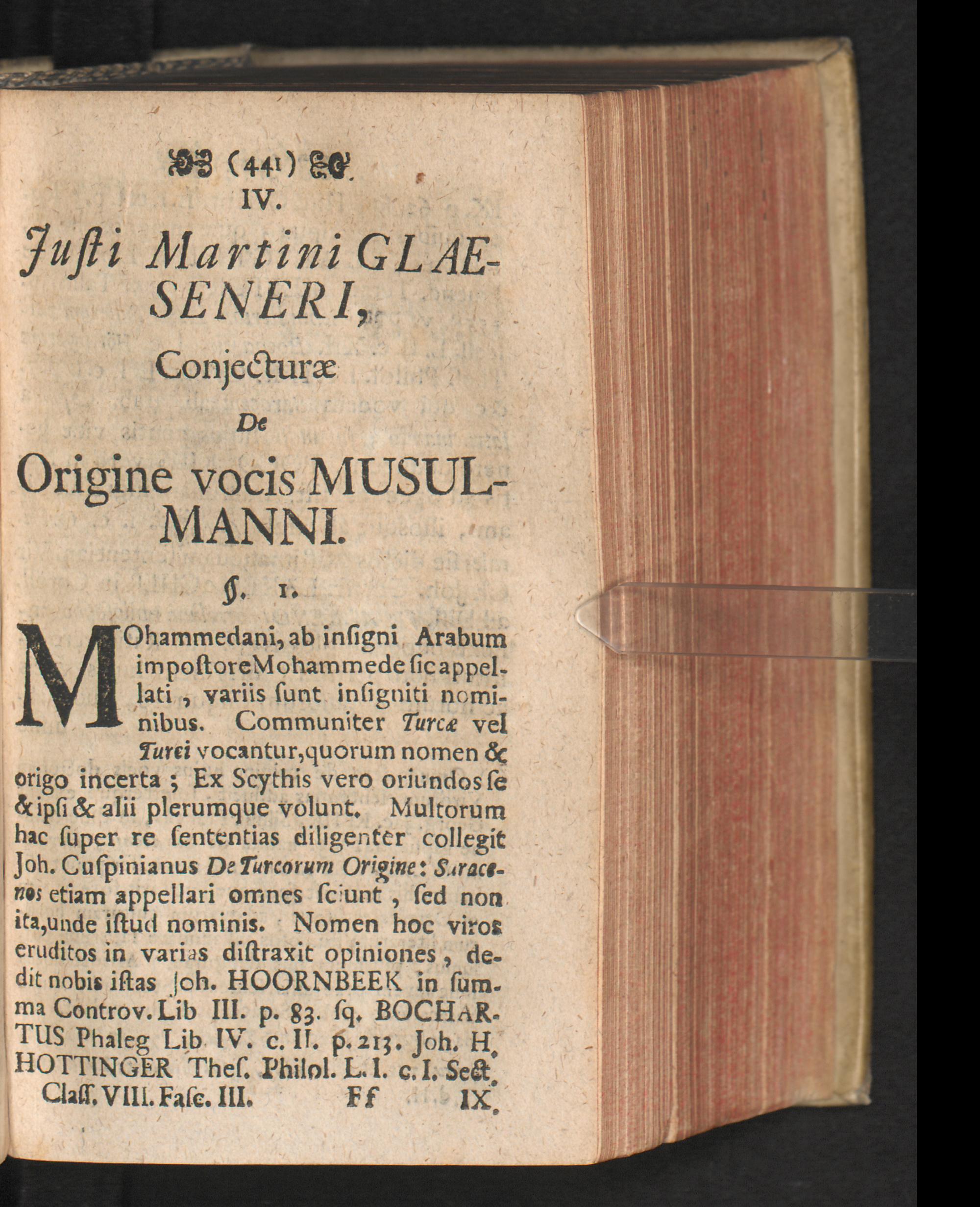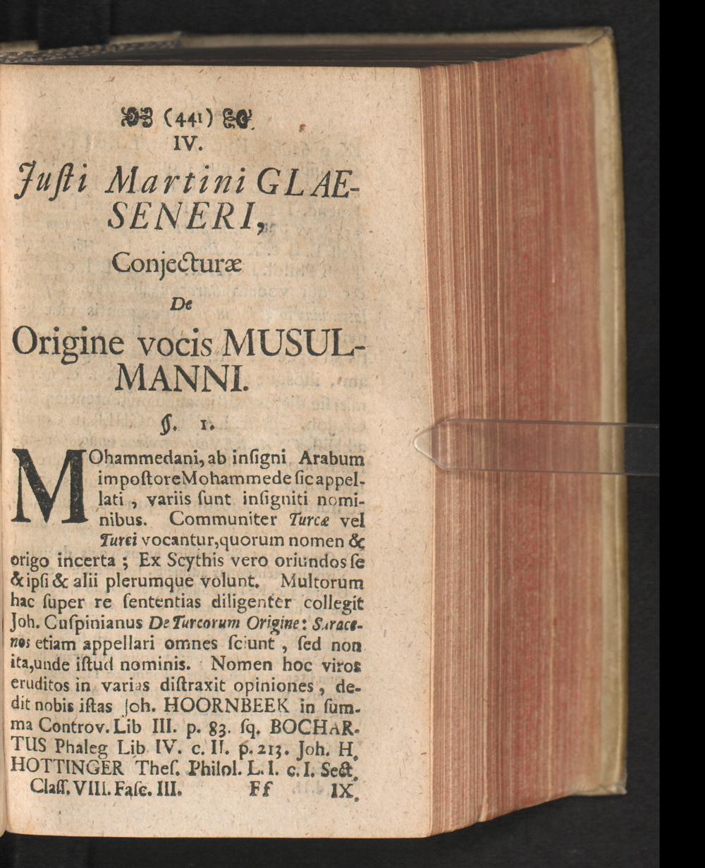 IV. Justi martini Glaeseneri, conjecturae de origine vocis Musulmanni.