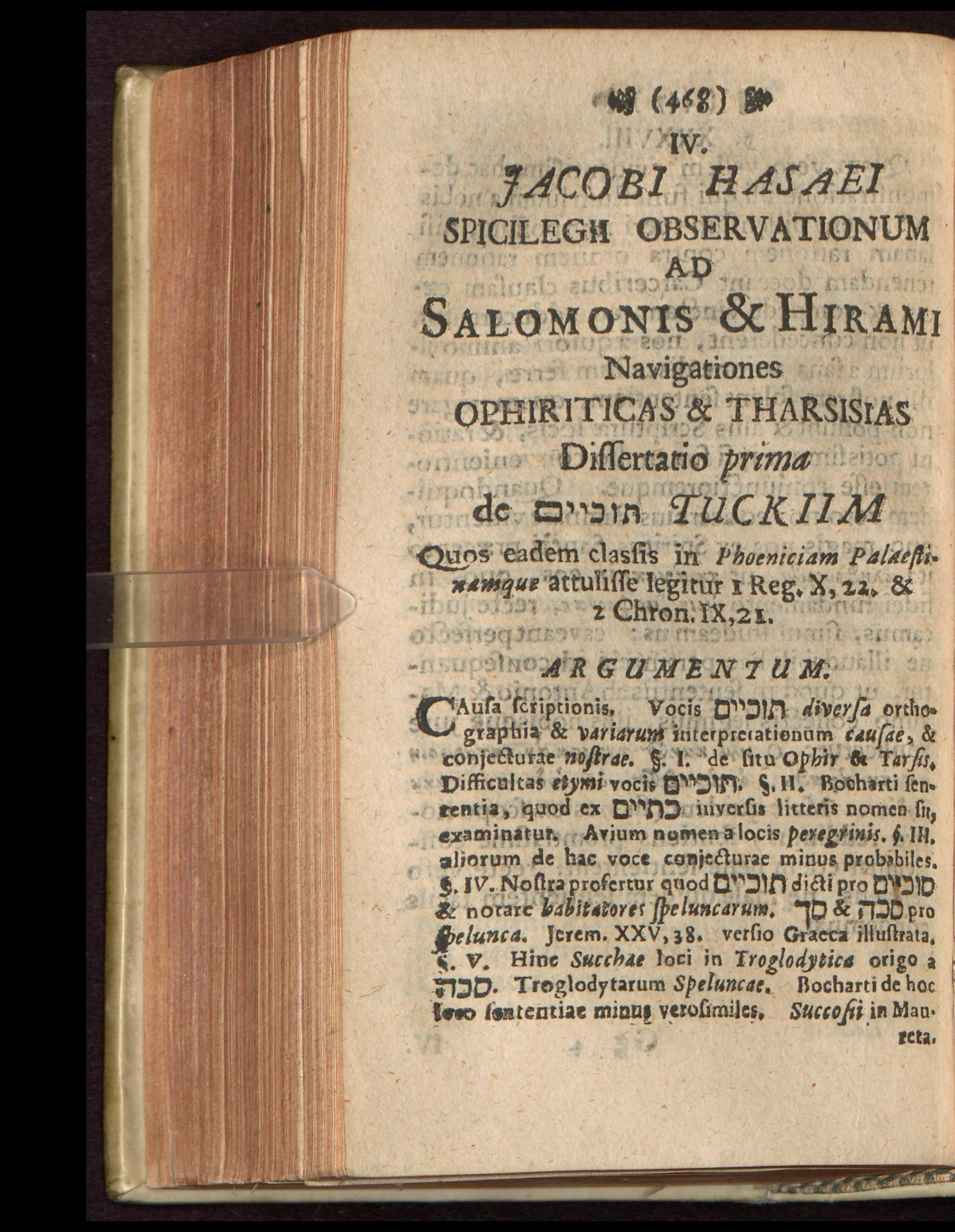 IV. Jacobi Hasaei spicilegii observationum ad Salominis & Hirami navigationes ophiriticas...