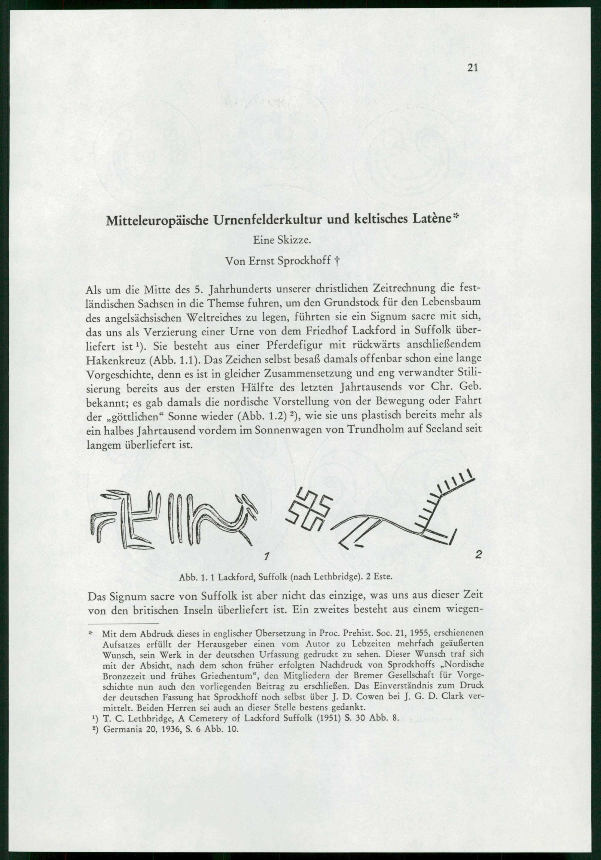 Sprockhoff, Ernst: Mitteleuropäische Urnenfelderkultur und keltisches Laténe* : eine...