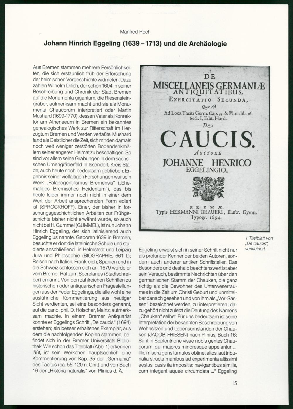 Rech, Manfred: Johann Hinrich Eggeling (1639 - 1713) und die Archäologie.