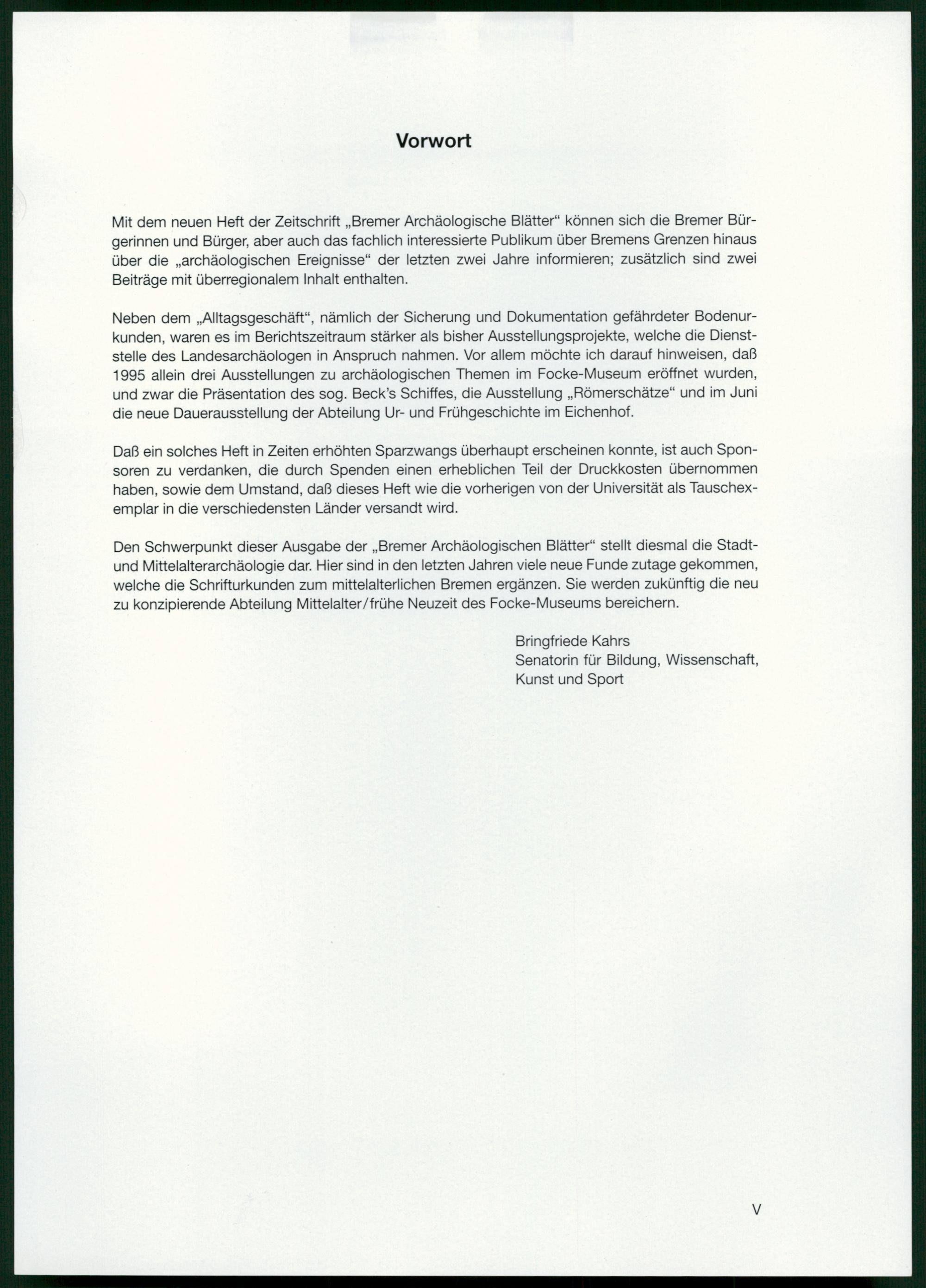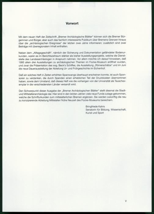 Bremer archäologische Blätter / Der Landesarchäologe