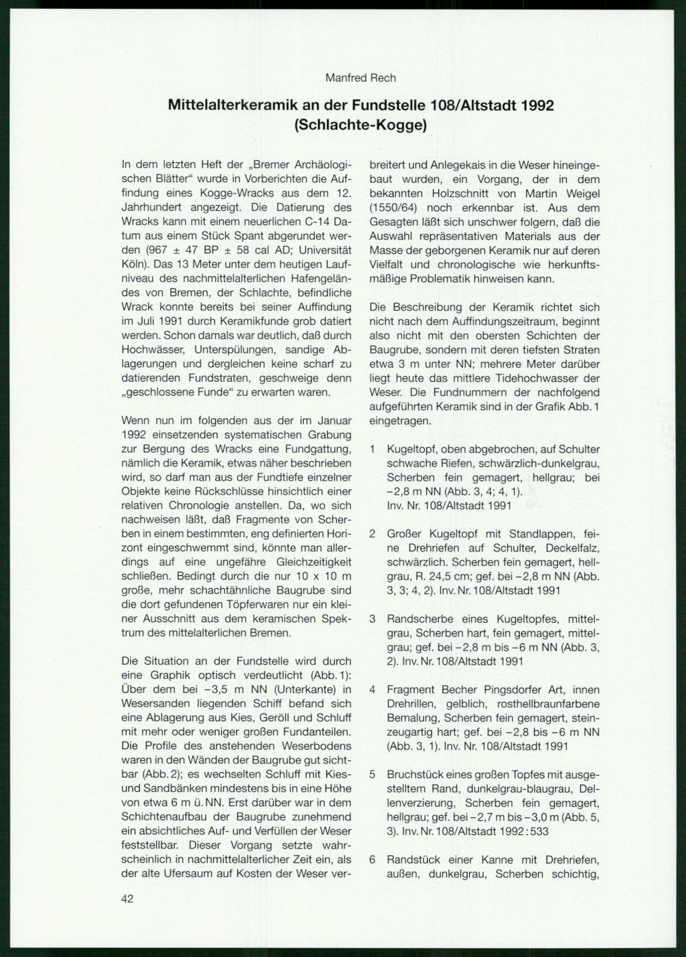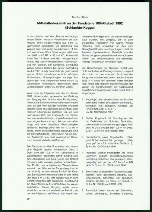 Rech, Manfred: Mittelalterkeramik an der Fundstelle 108/Altstadt 1992 (Schlachte...