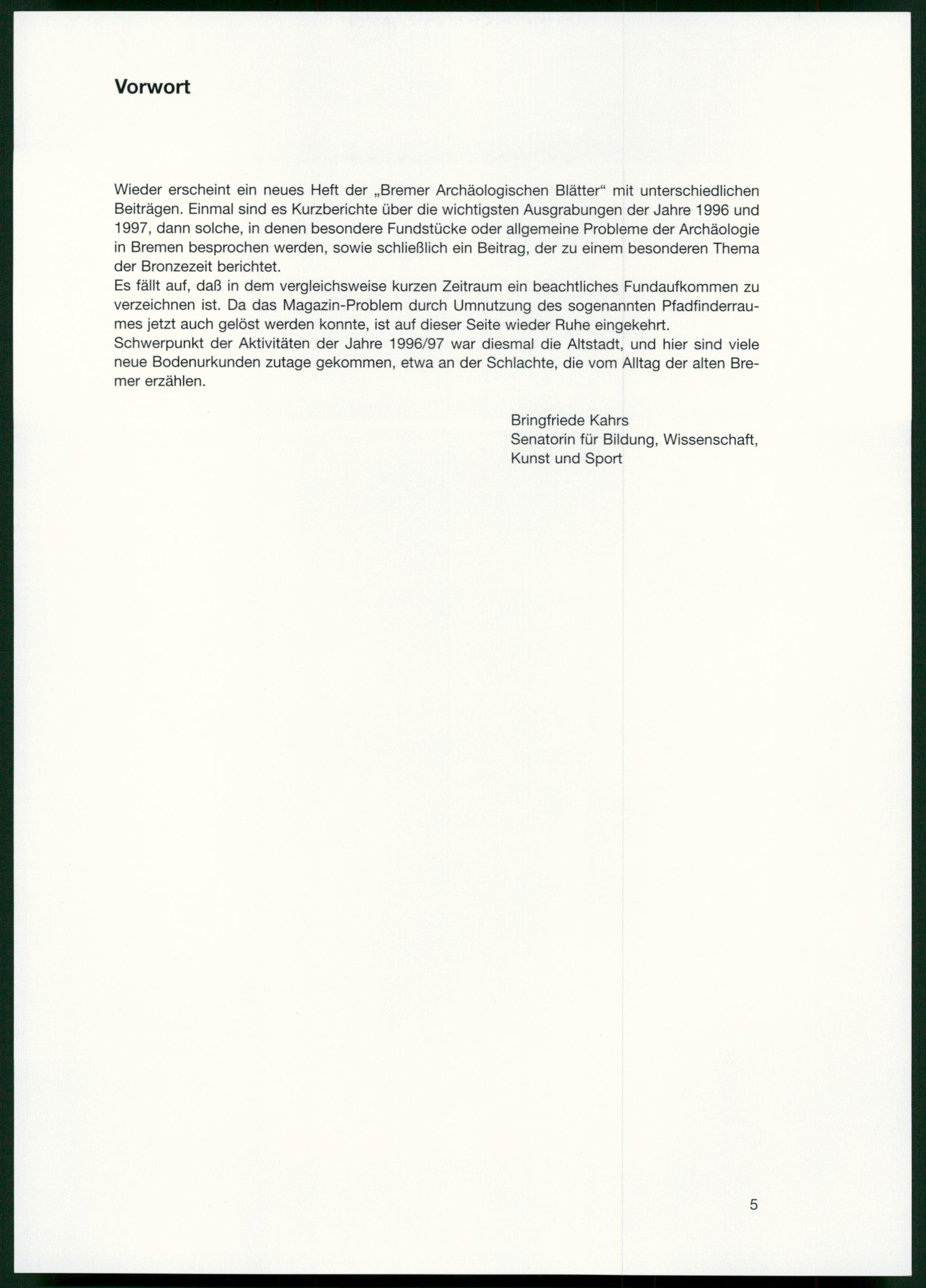 Kahrs, Bringfriede: Vorwort