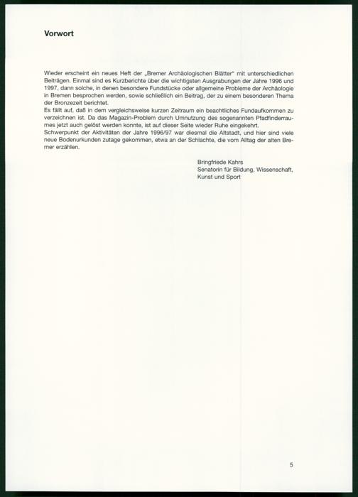 Bremer archäologische Blätter / Der Landesarchäologe