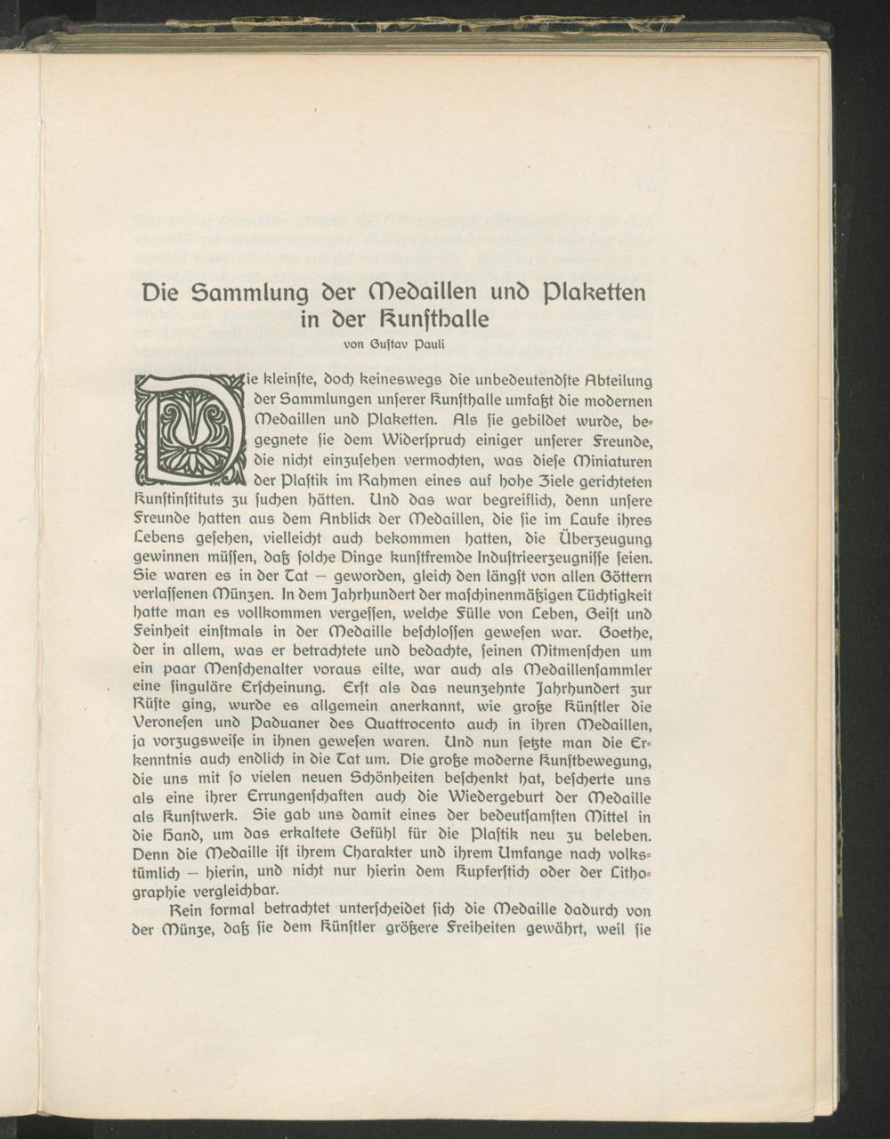 Pauli, Gustav: Die Sammlung der Medaillen und Plakatten in der Kunsthalle