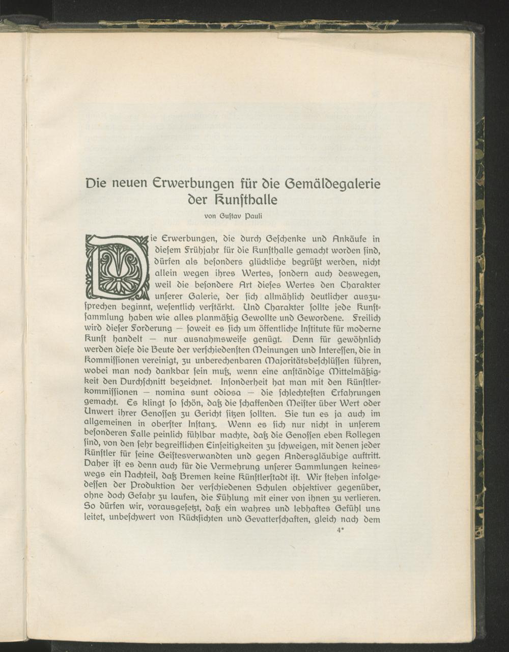 Pauly, Gustav: Die neuen Erwerbungen für die Gemäldegalerie der Kunsthalle