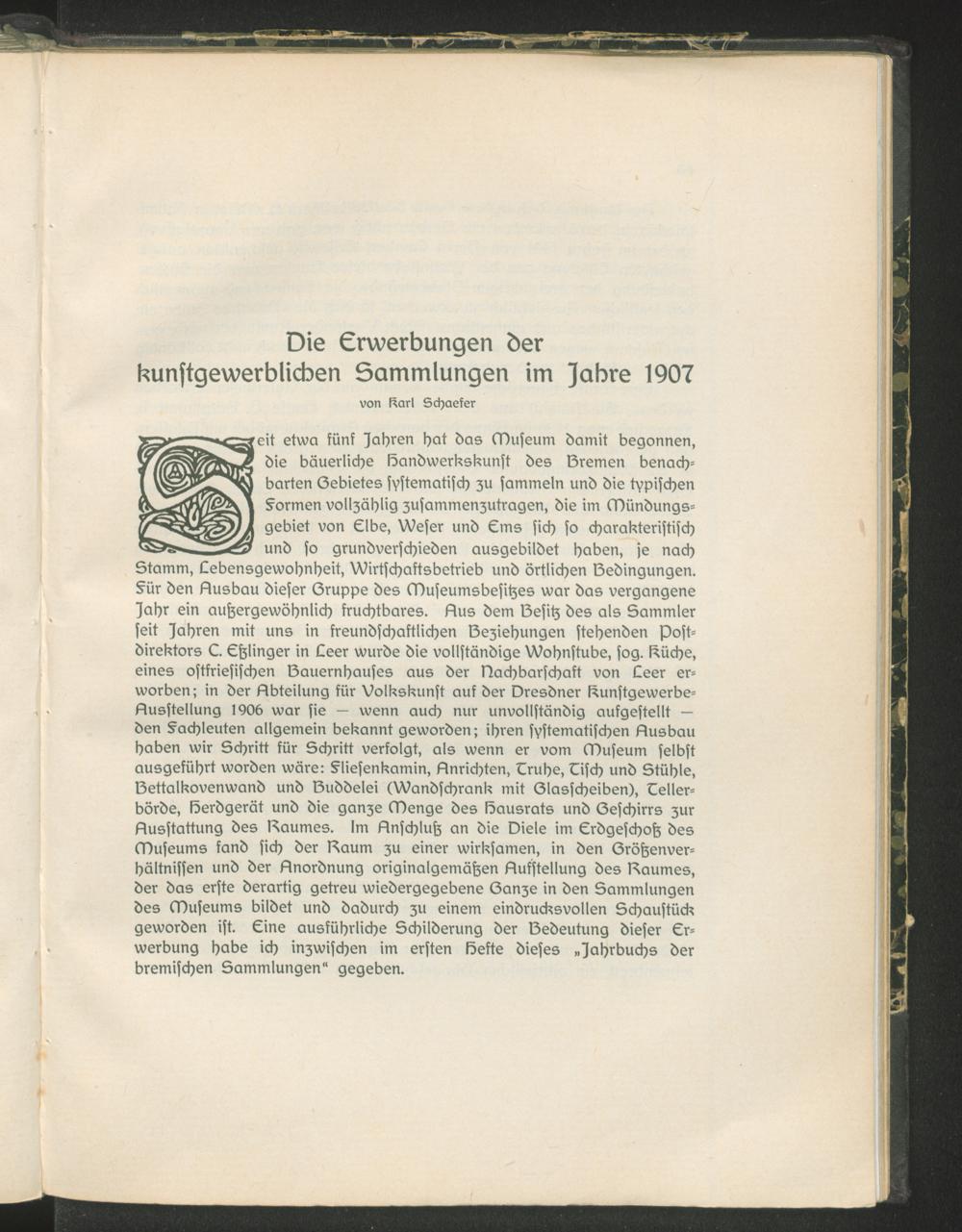 Schaefer, Karl: Die Erwerbungen der kunstgewerblichen Sammlungen im Jahre 1907