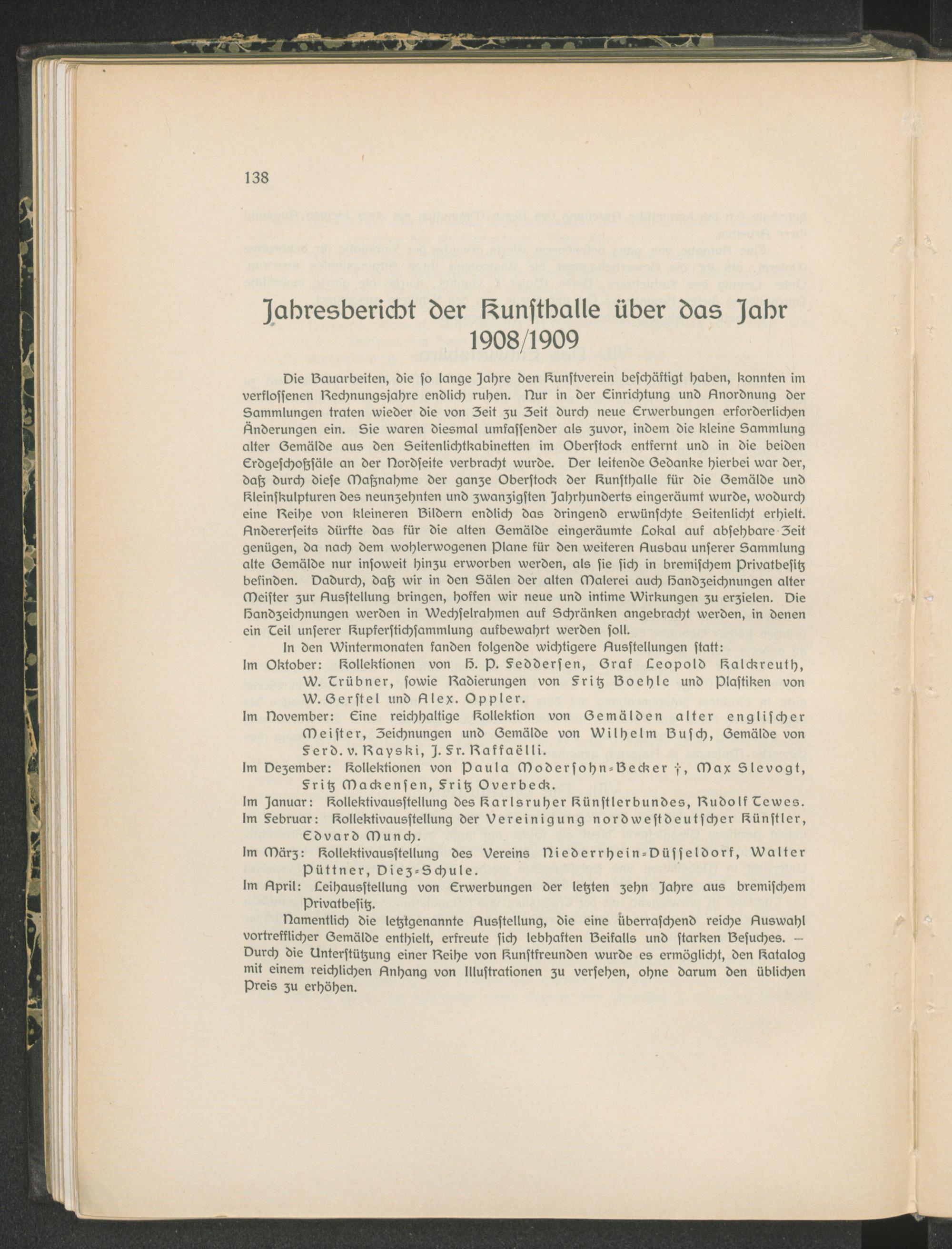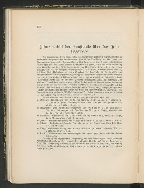 Pauli, G.: Jahresbericht der Kunsthalle über das Jahr 1908/1909