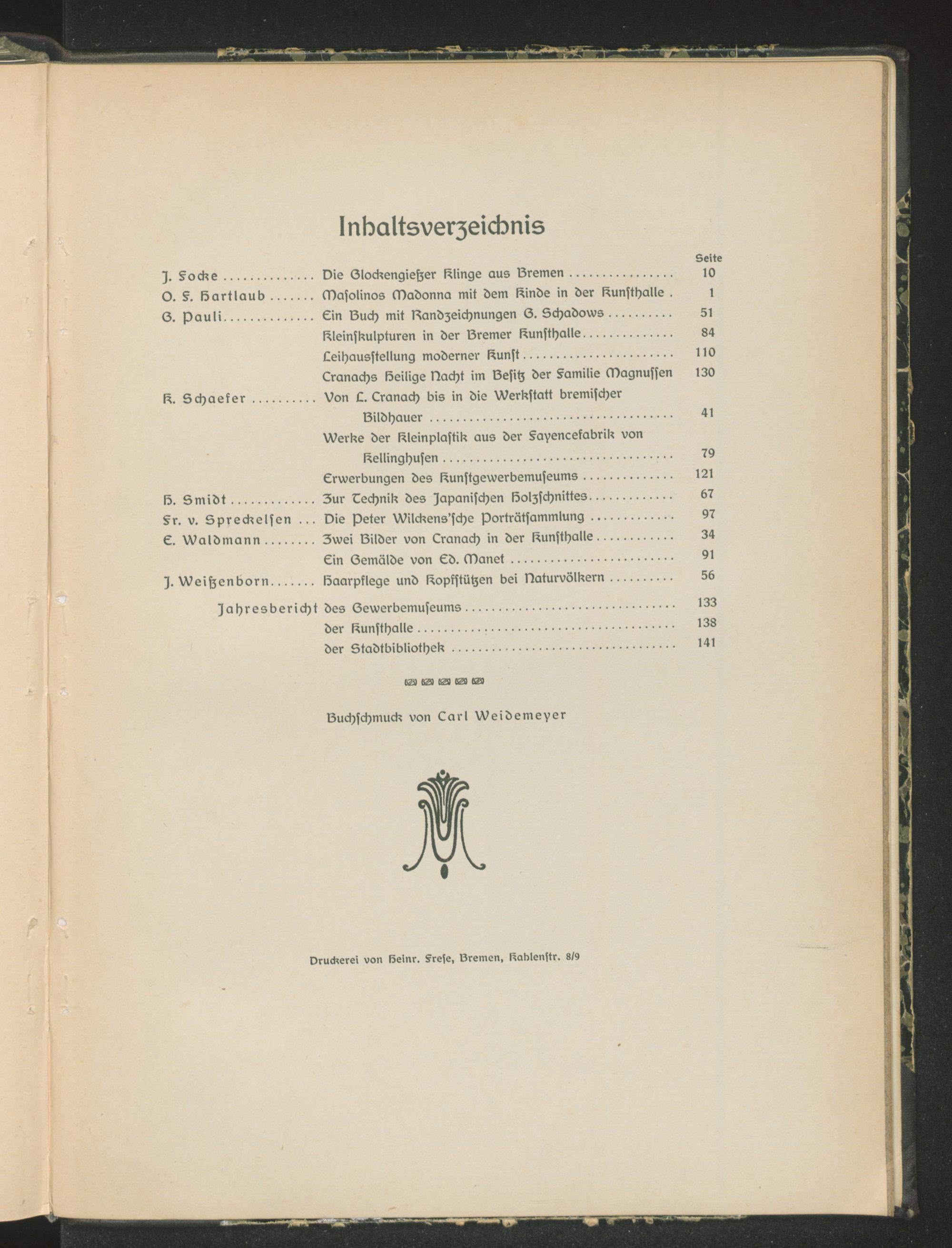 Jahrbuch der bremischen Sammlungen : Jahresberichte des Gewerbemuseums, des Kunstvereins, der Stadtbibliothek