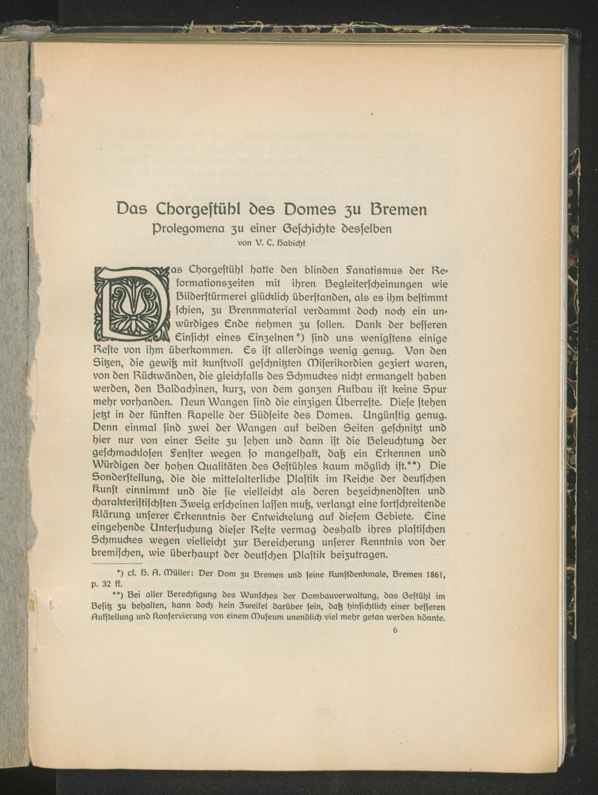 Habicht, V. C.: Das Chorgestühl des Domes zu Bremen : Prolegomena zu einer Geschichte...