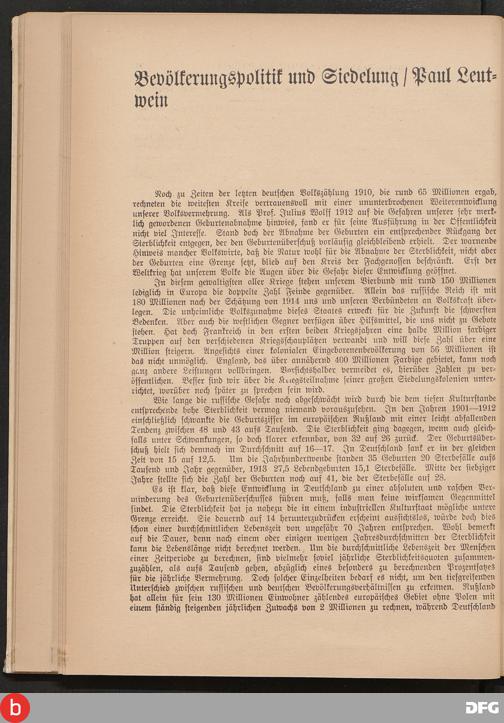 Bevölkerungspolttik und Siedelung / Paul Leut- wein