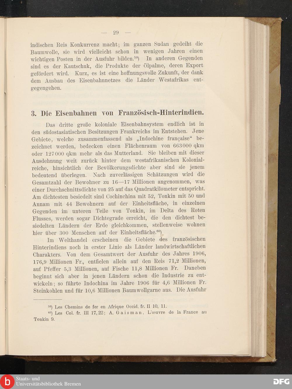 r>0 ) Les Chemins de fer en Afrique Occid. fr. II 10, 11. ü0 ) Les Col. fr. III 17,22; A. Gaisman, L’ceuvre de la France au Tonkin 9.