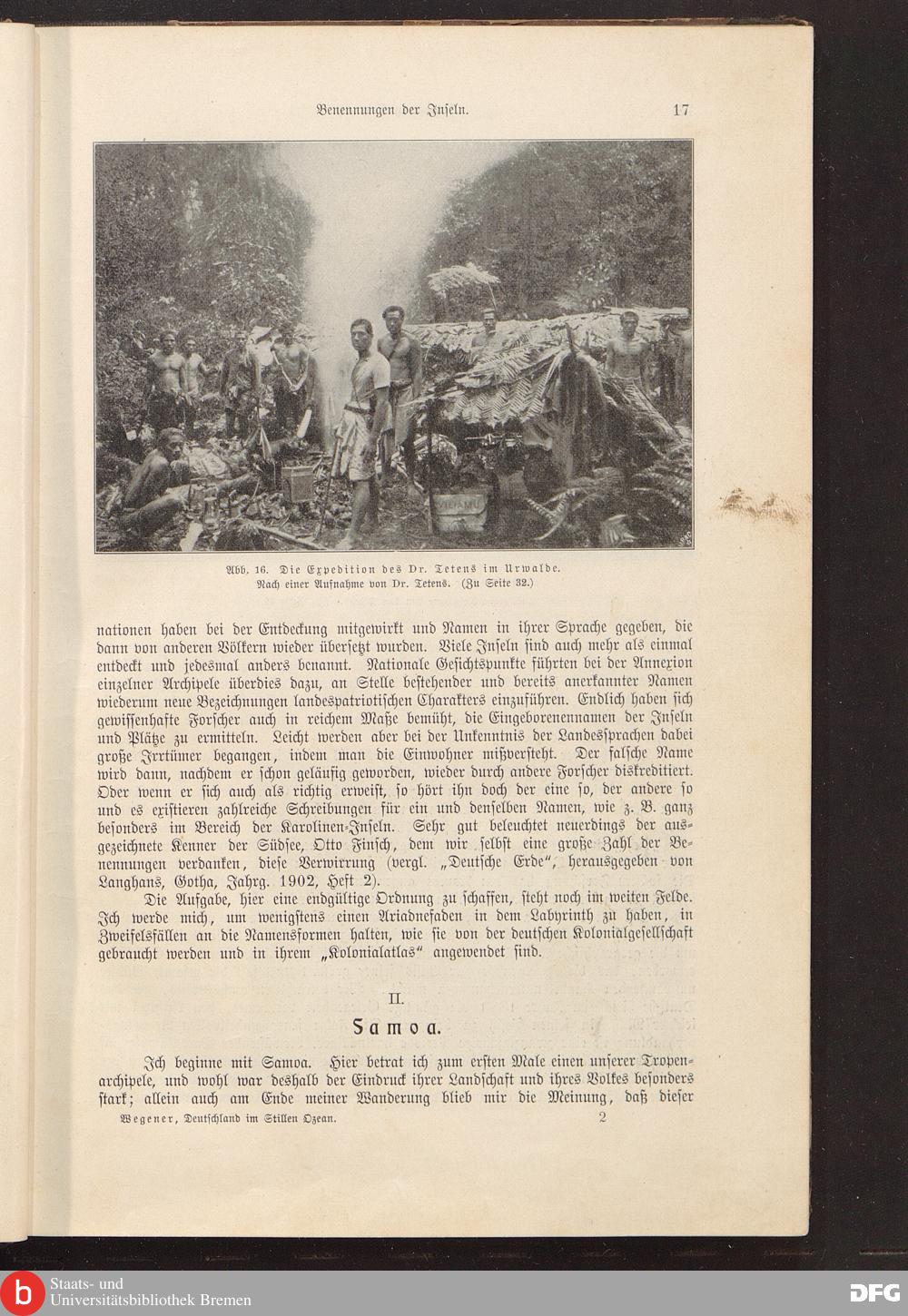 Ich beginne mit Samoa. Hier betrat ich zum ersten Male einen unserer Tropenarchipele, und Wohl war deshalb der Eindruck ihrer Landschaft und ihres Volkes besonders stark; allein auch am Ende meiner Wanderung blieb mir die Meinung, daß dieser