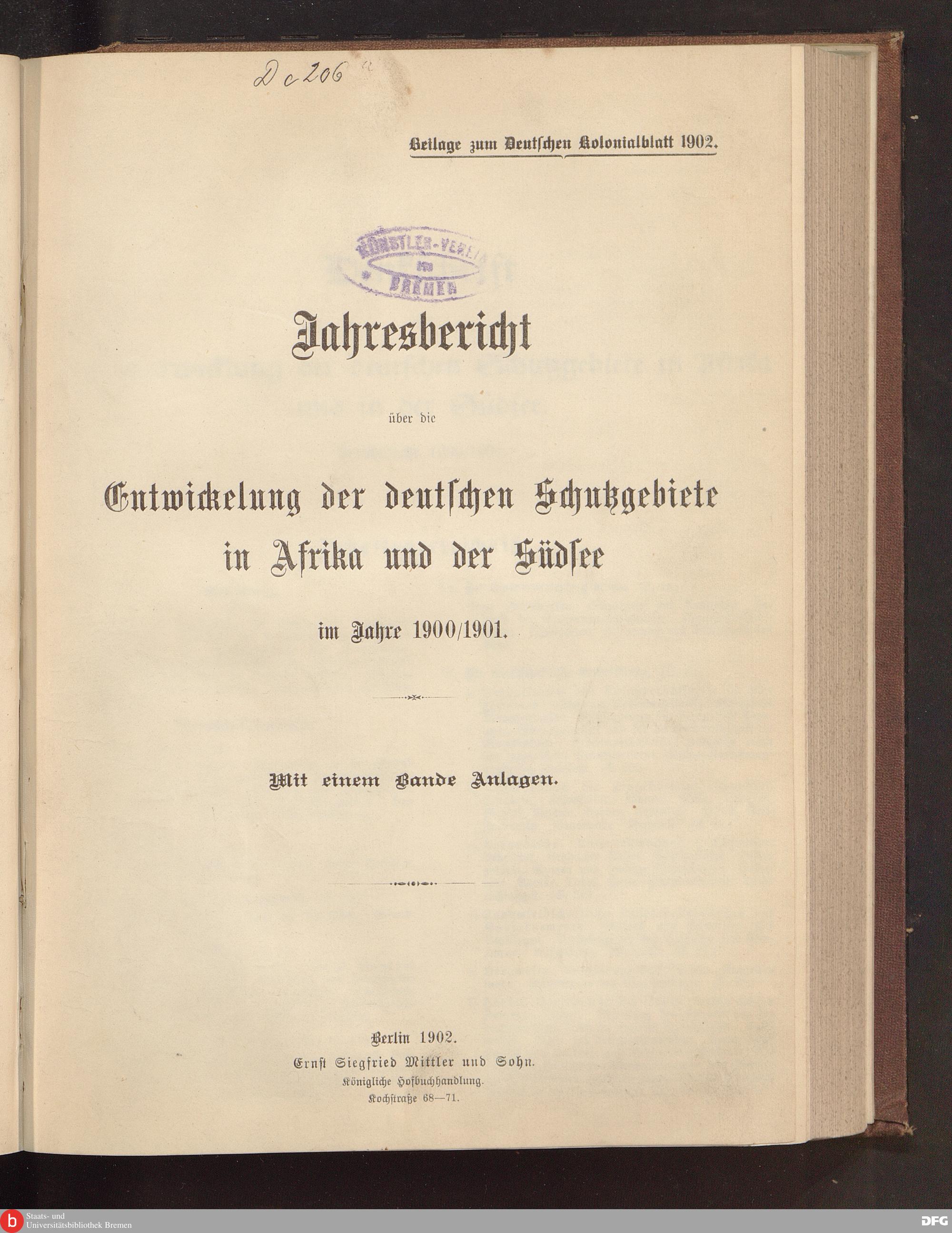Jahresbericht über die Entwickelung der Schutzgebiete in Afrika und der Südsee