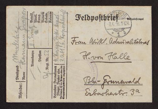Nachlässe und AutographenNachlass Henni von HalleBrief von Hermann Grapow an Henni von Halle, 03.06.1916