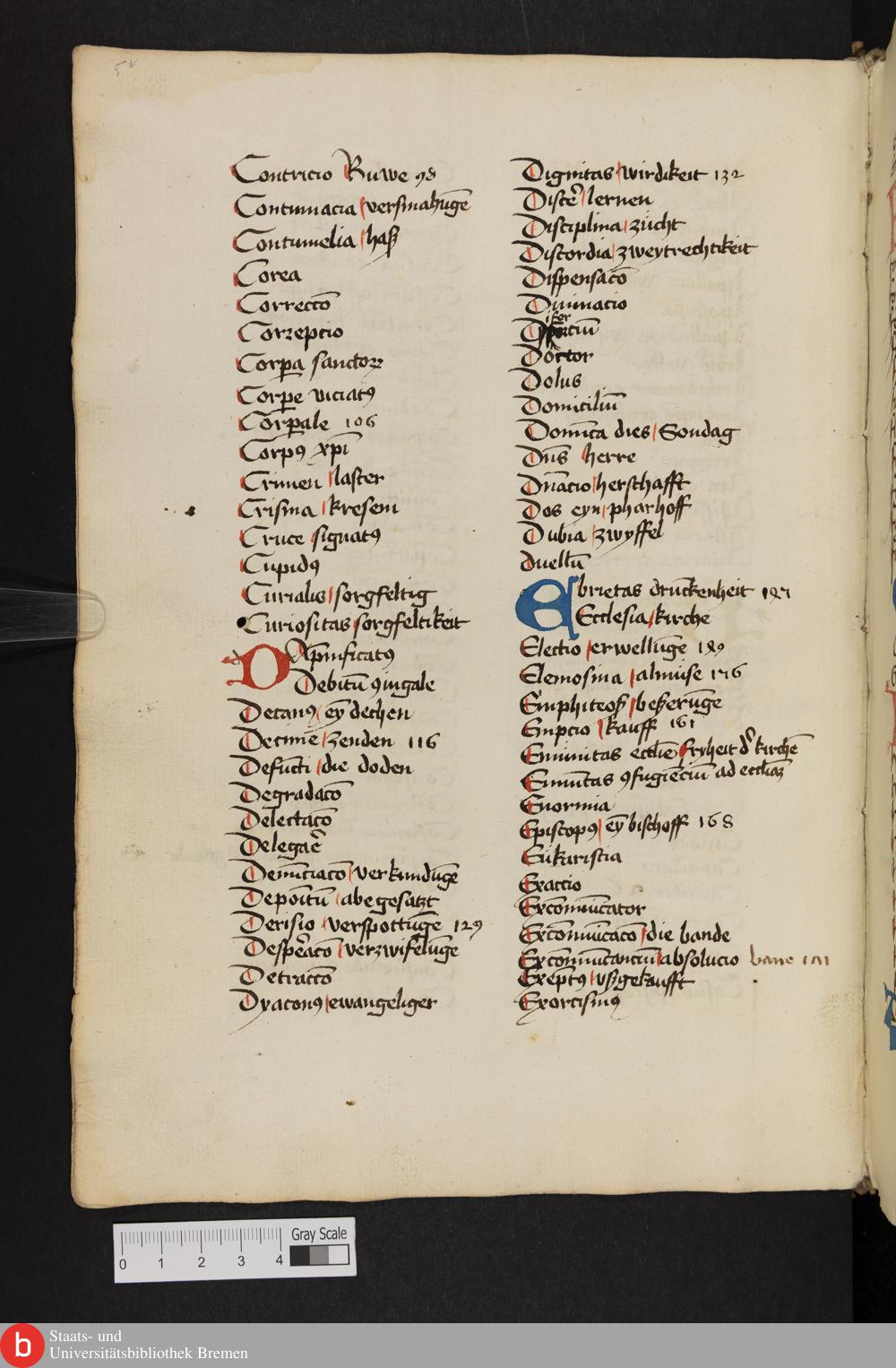 Alphabetisches Verzeichnis der in der Summa behandelten Rechtsregeln. Anfang fehlt.