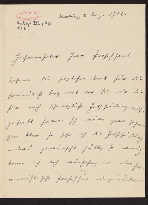 Estates and AutographsBrief von Eugen Kühnemann an Hans Vaihinger, 04.08.1902 [04.08.1902]