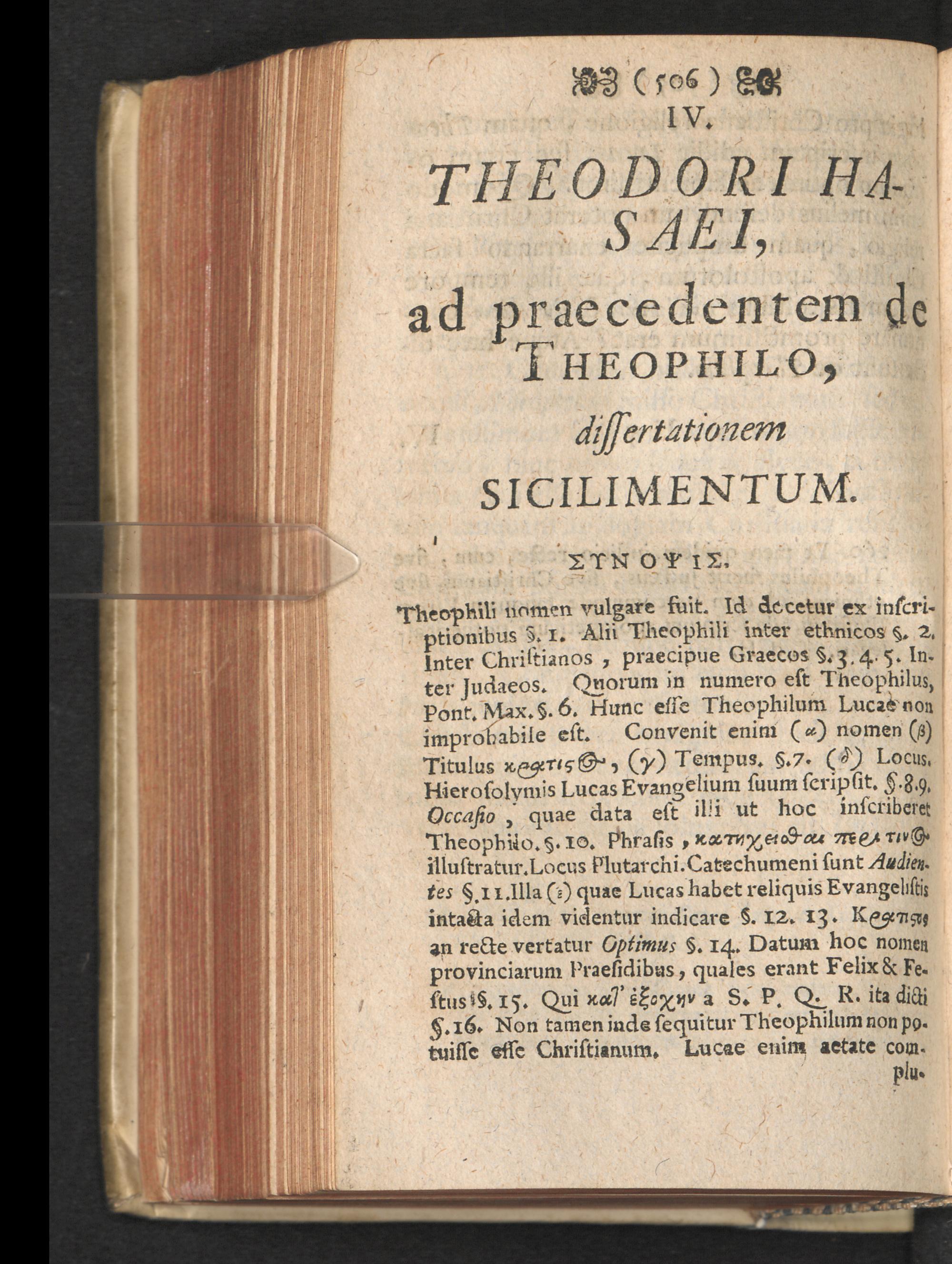 III. C.A. Heumanni dissertatio de Theophilo, cui Lucas historiam sacram inscripsit. Argumentum.
