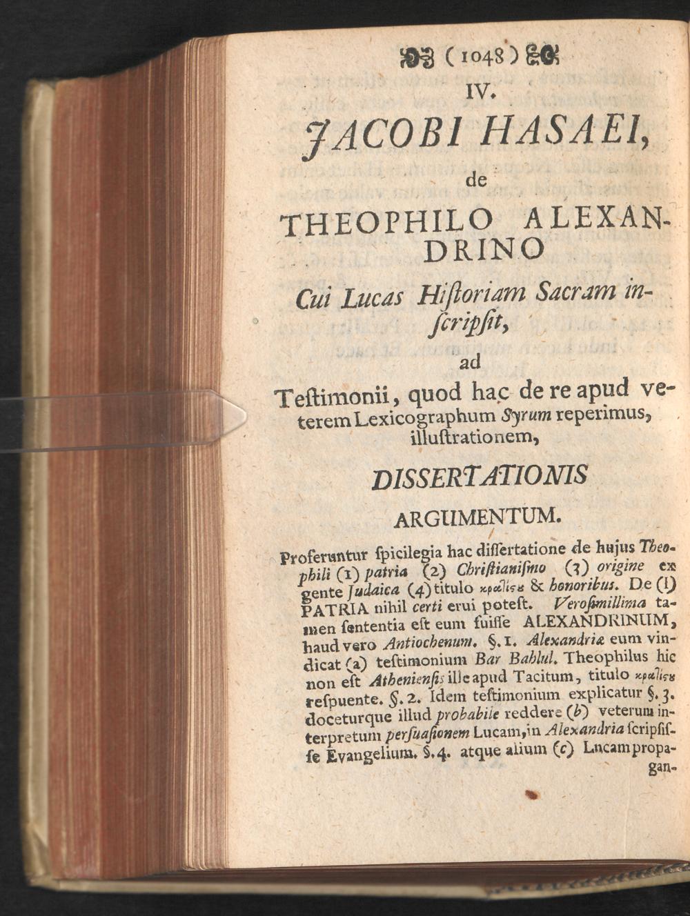 IV. Jacobi Hasaei, de Theophilio Alexandrino cui Lucas histroiam sacram inscripsit, ...