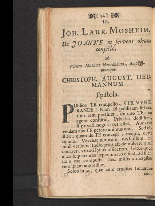 III. Joh. Laur. Mosheim, de Joanne in fervens oleum conjecto ...