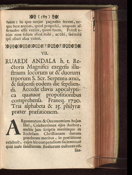 VII. Ruardi Andala h.t. Rectoris Magnifici exegesis illustrium locoruk ut & duorum typorum S. Scr. Serpentis aenei, ...