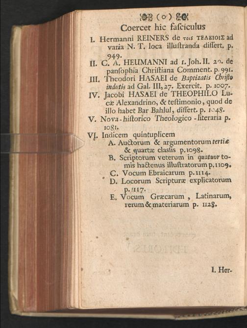 II. C.A. Heumanni commentatio. ad I. Joh. III:20. de Pansophia Christiana.