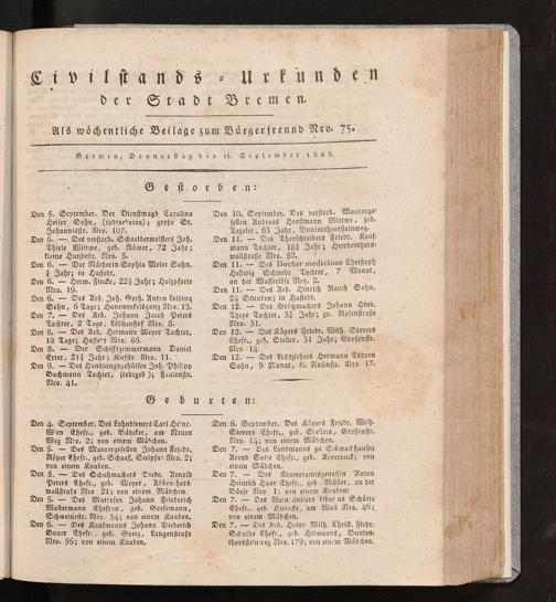 Civilstands-Urkunden der Stadt Bremen