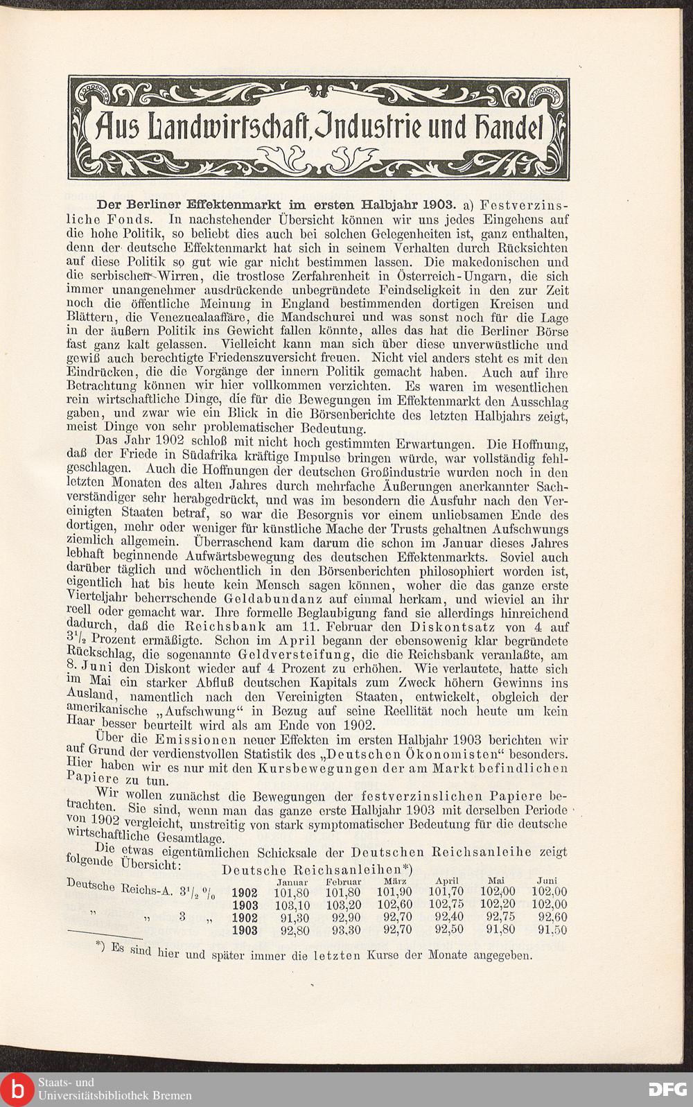 Aus Landwirtschaft, Industrie und Handel
