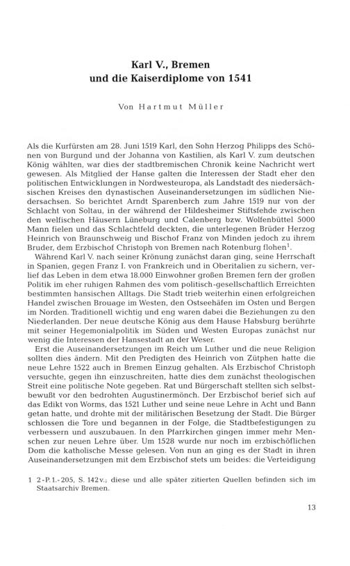 Müller, Hartmut: Karl V., Bremen und die Kaiserdiplome von 1541