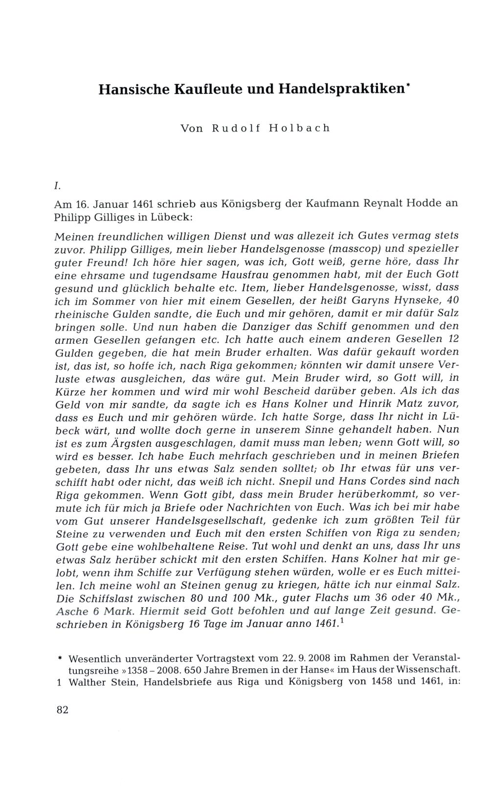 Holbach, Rudolf: Hansische Kaufleute und Handelpraktiken