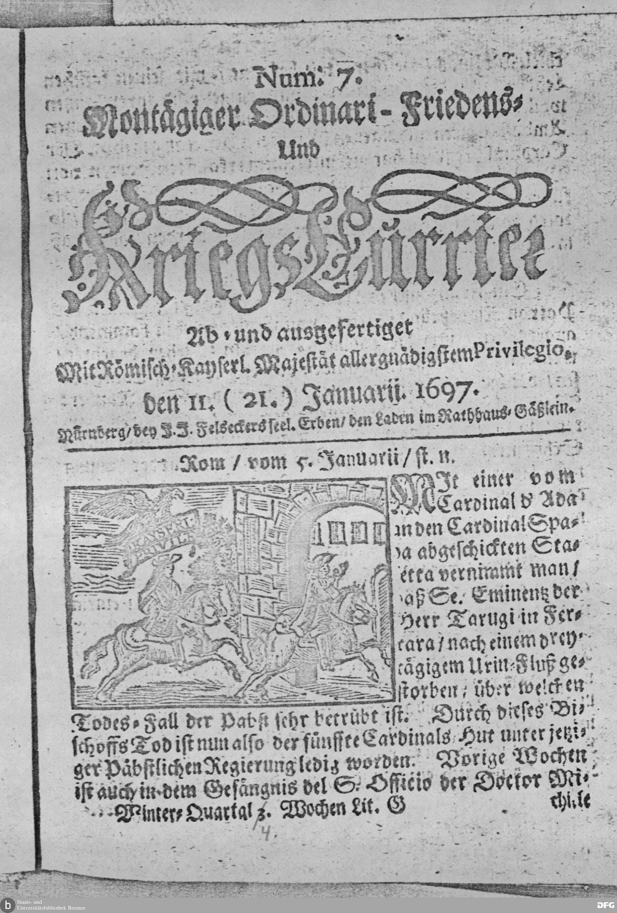 Montägiger Ordinari-Friedens- und KriegsCurrier. 1673-1709