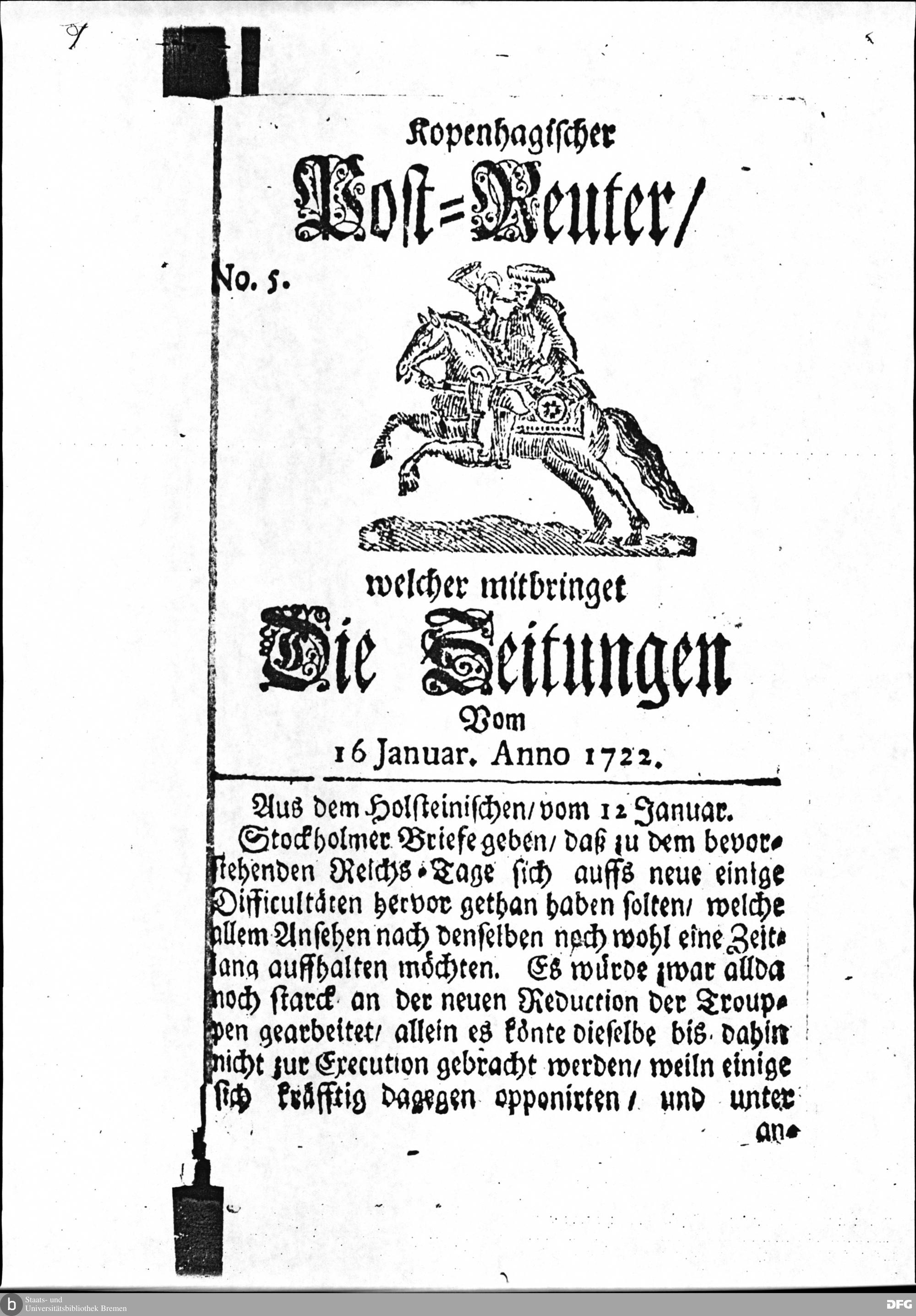 Kopenhagischer Post-Reuter welcher mitbringet die Post-Zeitungen. 1701-1730
