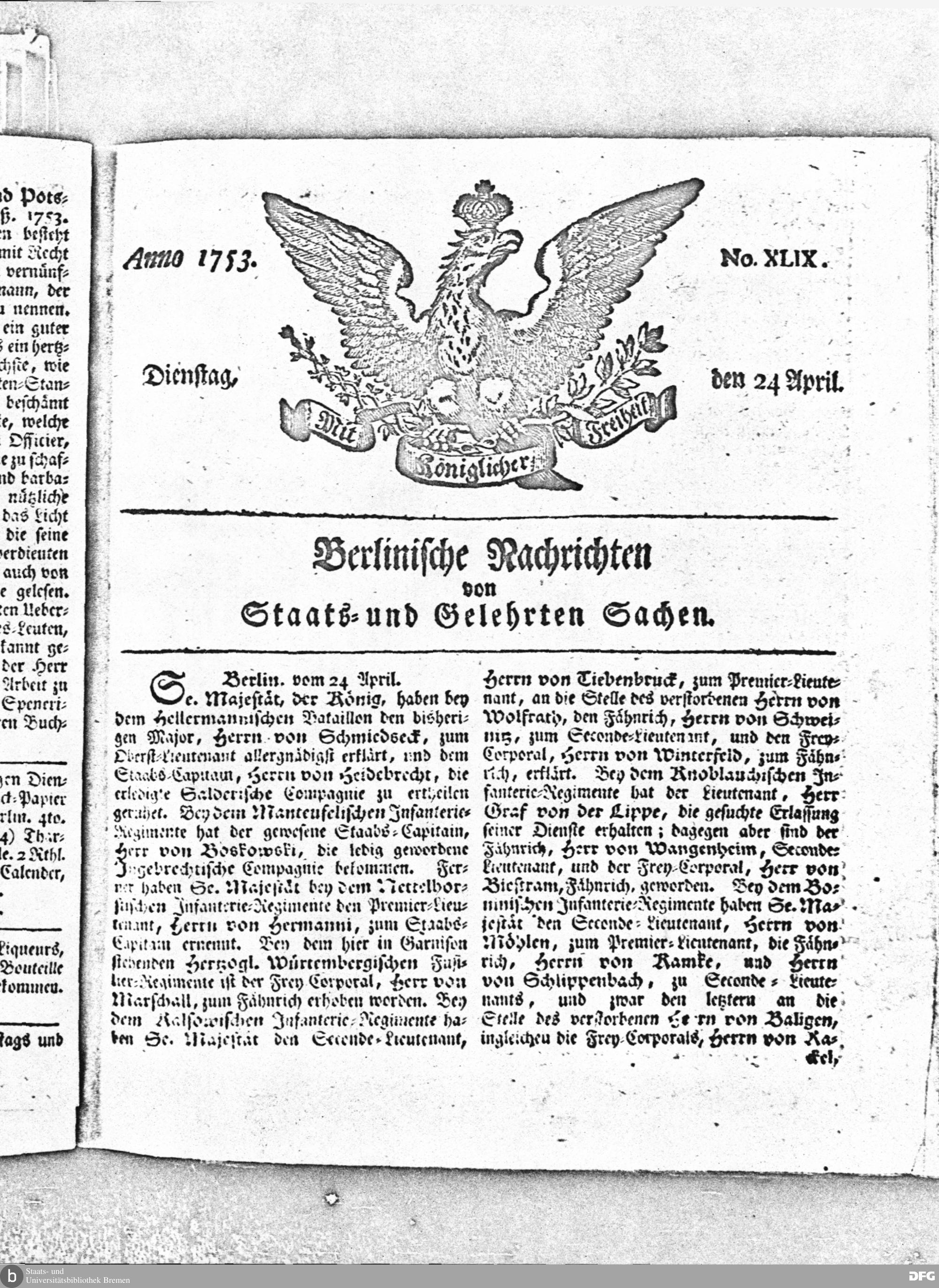 Anno 1753. No. XLIX. Dienstag, den 24 April.